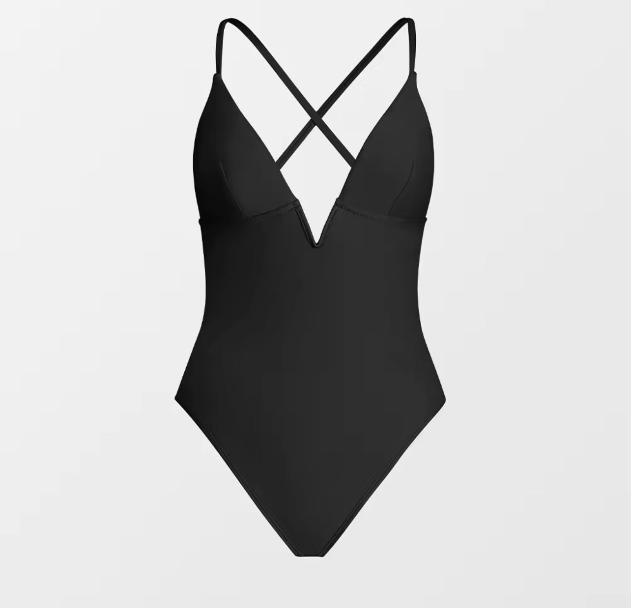 Fato de banho decote em V, de alças finas.